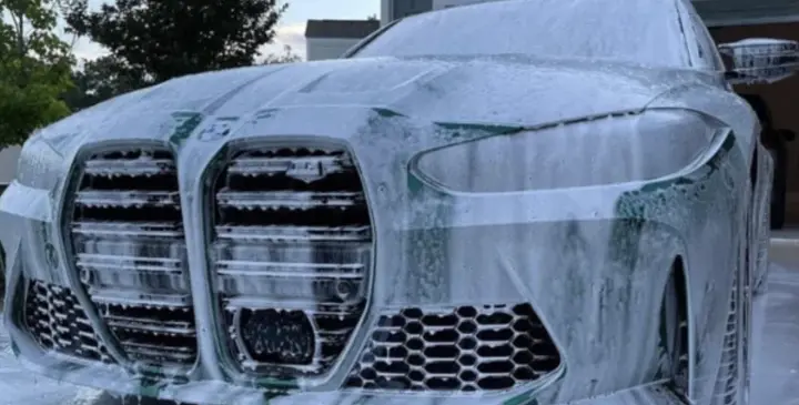 Foam cannon wash followed by a hand wash, including deep cleaning of wheels, tires, and wheel wells. Vehicle is dried with microfiber towels and finished with a protective wax for added shine. Door jambs cleaned, with tire shine applied for a fresh finish.